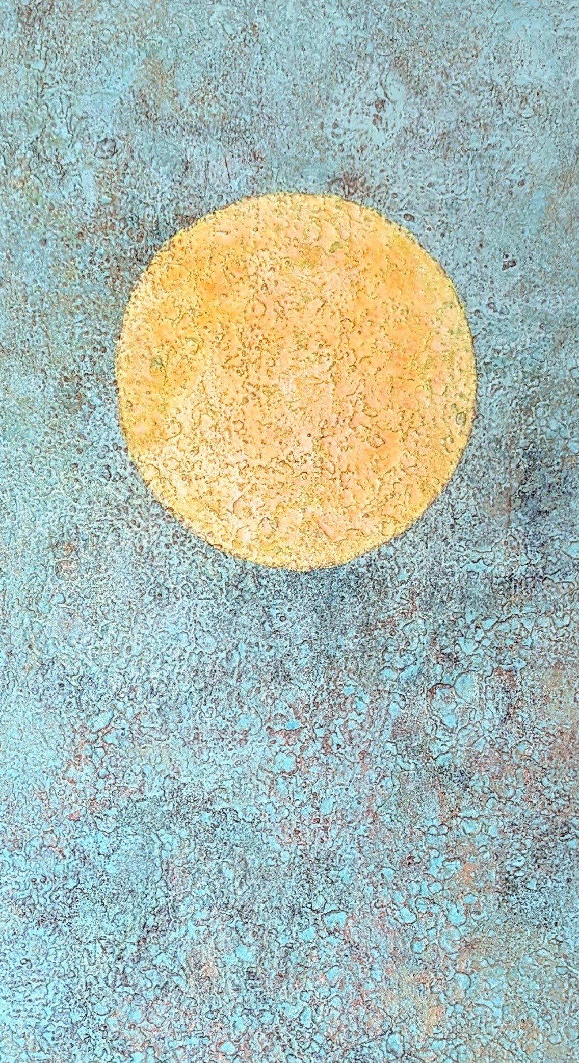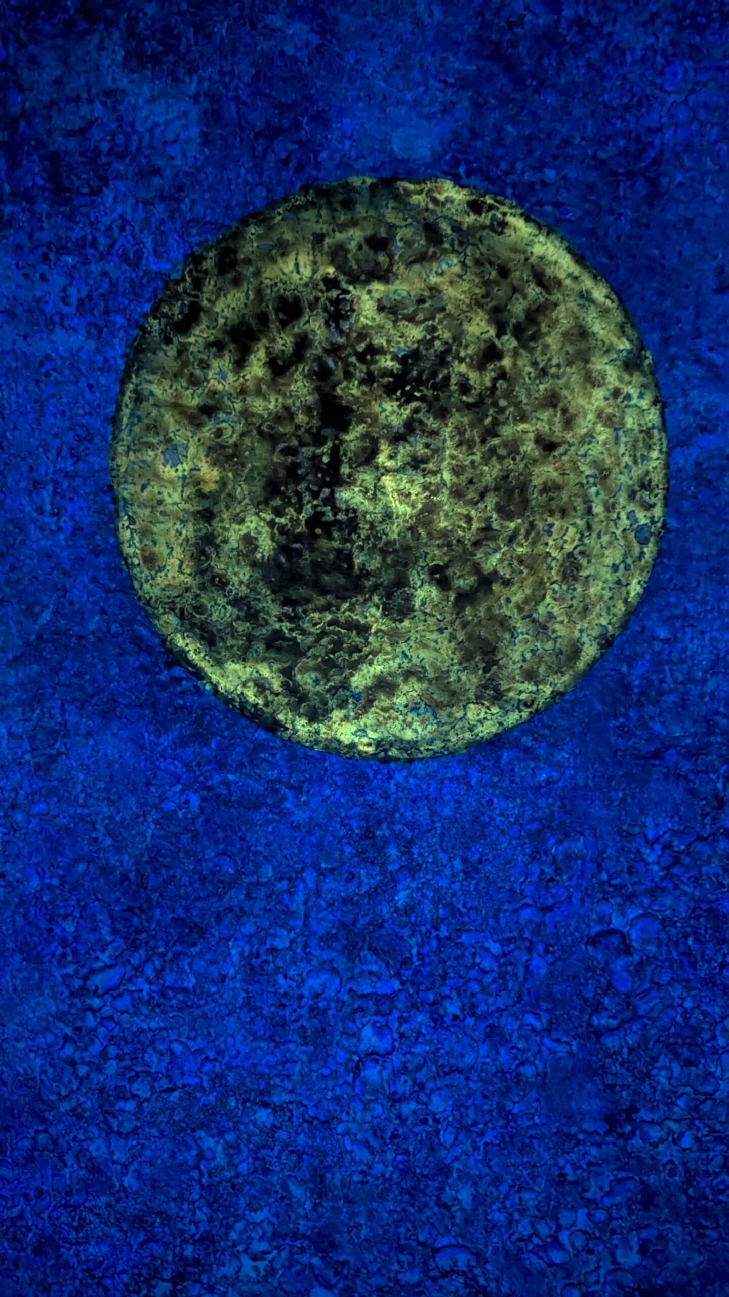 Materials: Turquoise, phosphorescent pigment, limestone, marble, pigment, and polymer on canvas