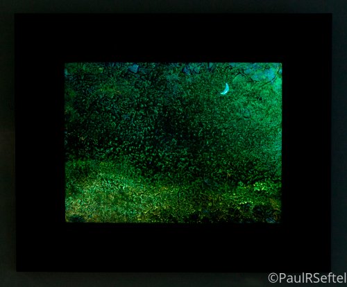 graphite, mica, turquoise powder, red earth. phosphorescent pigment on frame