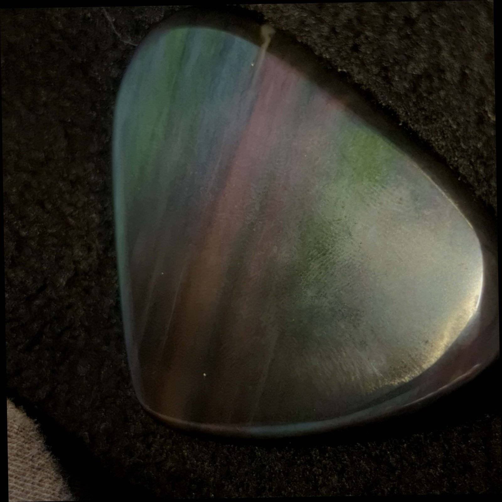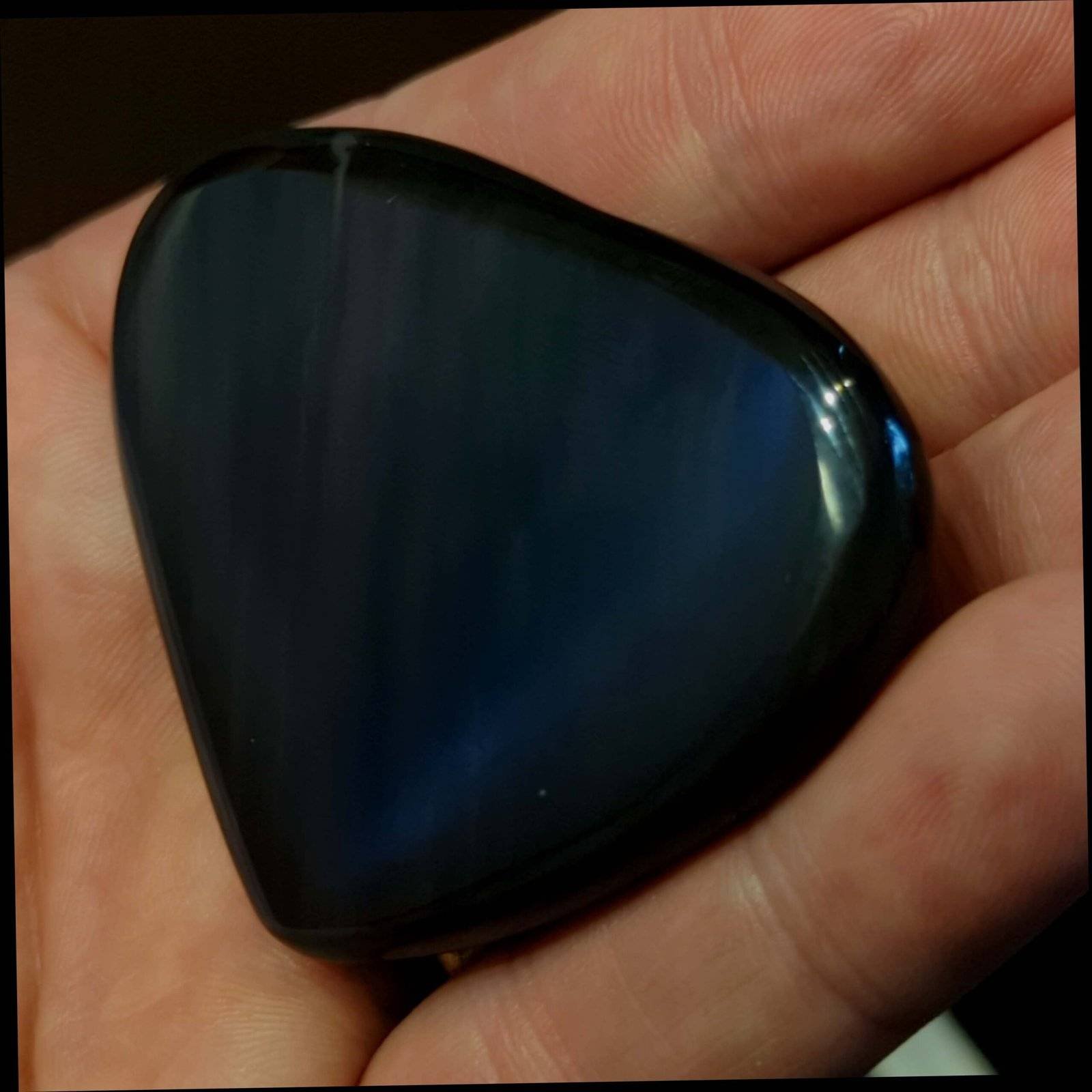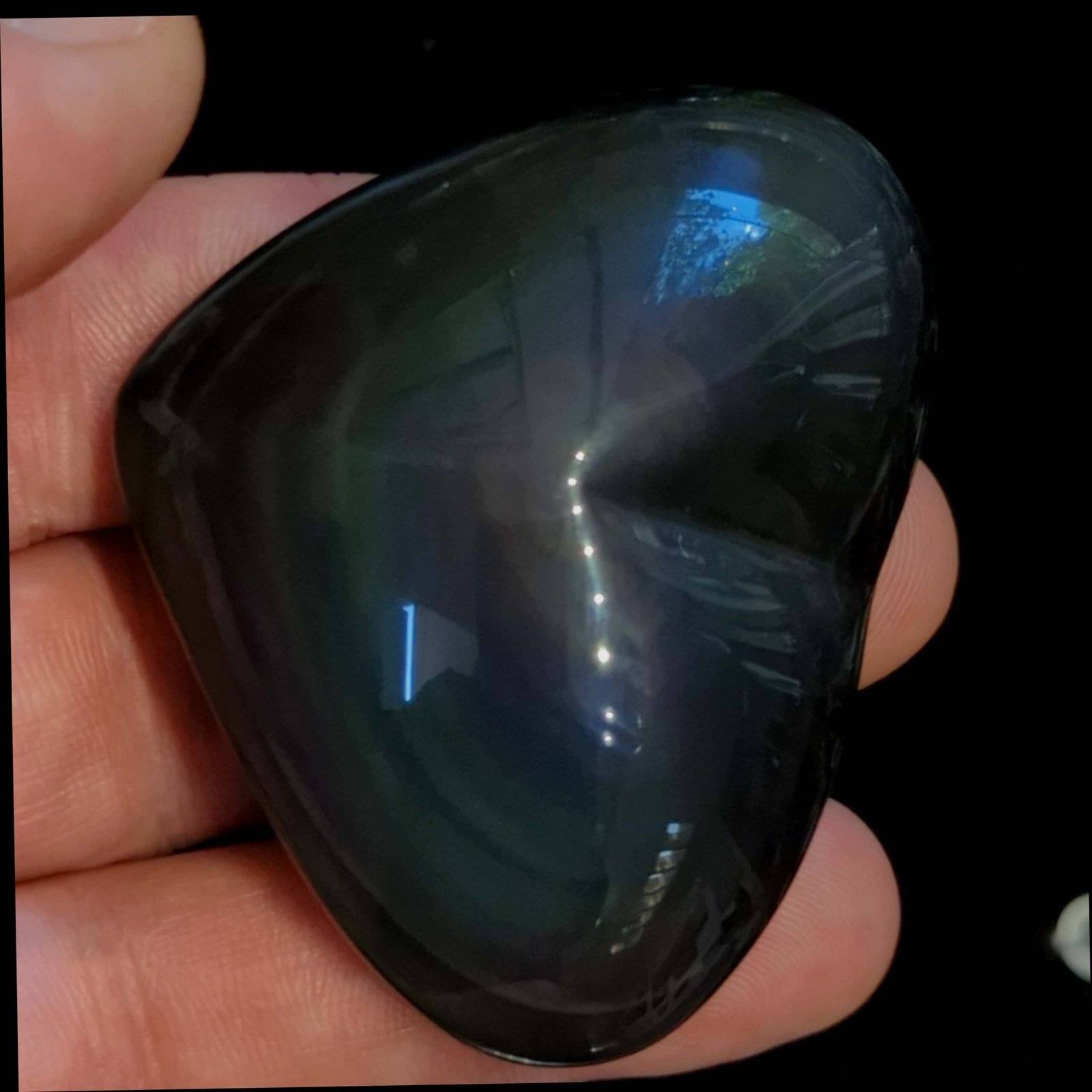 Enigmatic allure with this striking obsidian pendant. Expertly fashioned in a smooth cabochon cut, the dark blue gemstone exudes a captivating iridescence. Set in a luminous yellow gold base, this pendant is perfect for adding a touch of modern mystique to any ensemble. A fusion of timeless design and intriguing gemstone artistry.