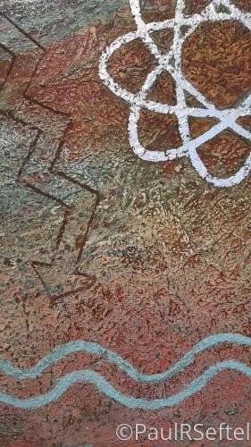 Limestone, Marble, Silver, Turquoise, Iron, Copper, Garnet, pigment and polymer on canvas