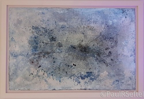 Mixed media on panel. Limestone, marble, metal patina, salts, uv pigment and polymer