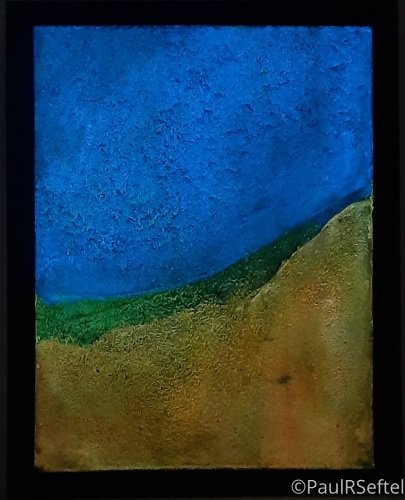 Turquoise powder, diamond dust, phosphorescent minerals, pigment and polymer on canvas.See next photo for glow in the dark, night version.