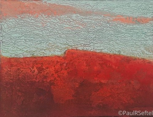 Turquoise powder, phosphorescent pigment, polymer on 12×16 canvas