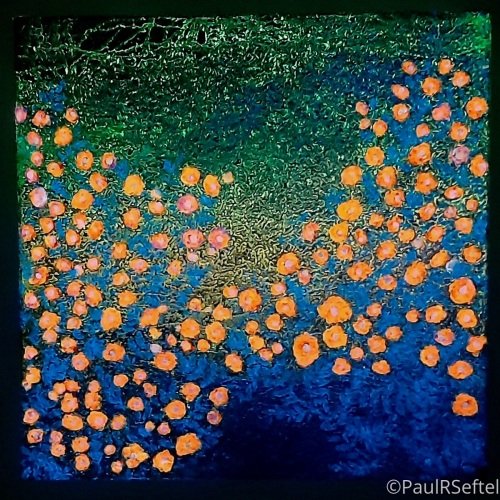 turquoise powder, phosphorescent pigment, minerals and pigment on canvas.