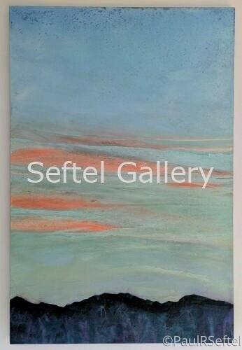 Turquoise powder, phosphorescent pigment, hematite, marble powder pigment and polymer on canvas