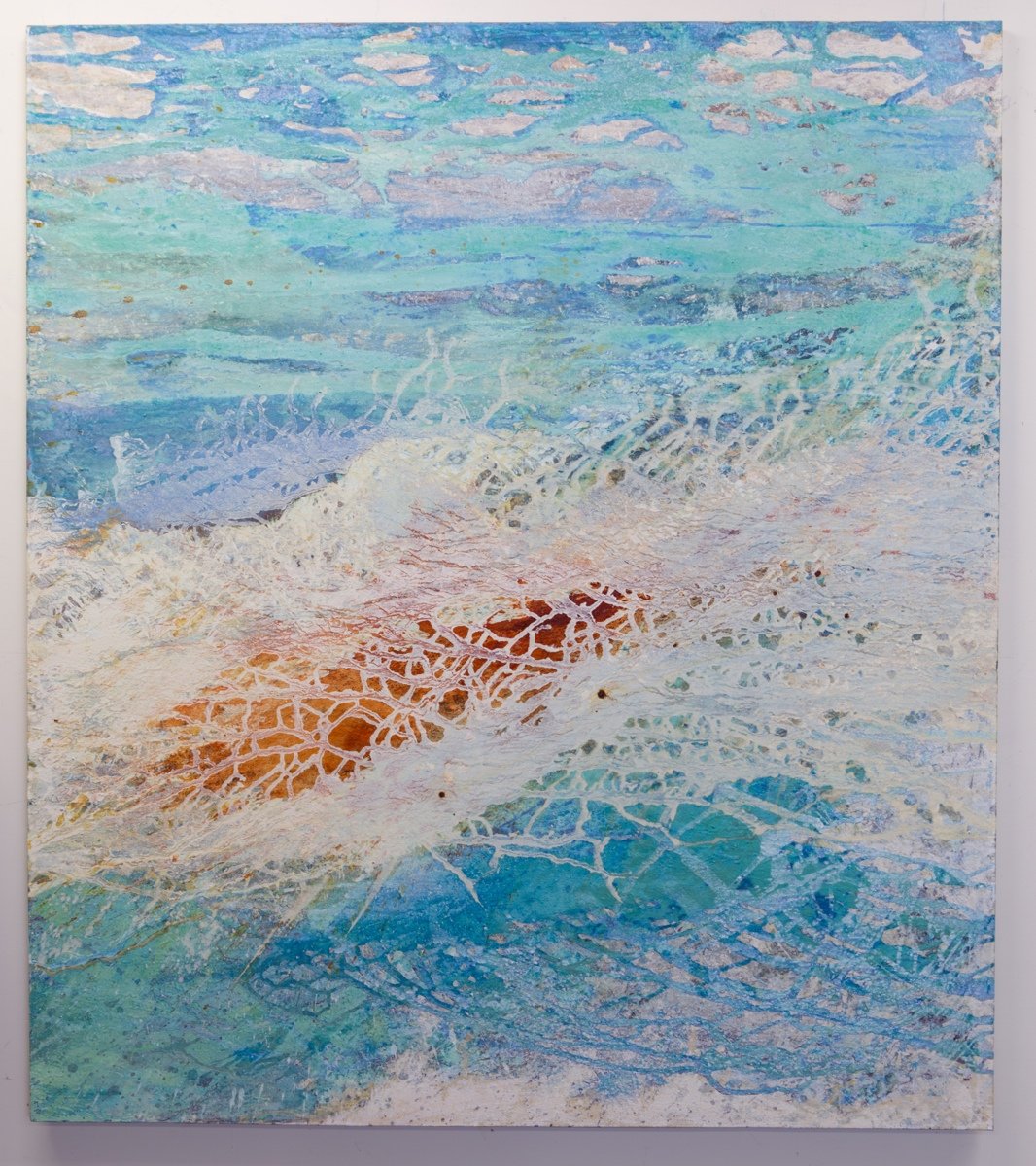 Stone and metal minerals pigments with polymer on canvas