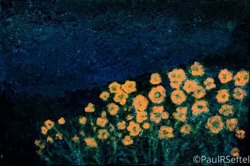 turquoise powder, phosphorescent pigment, mixed media stone and metal minerals on birch wood panel