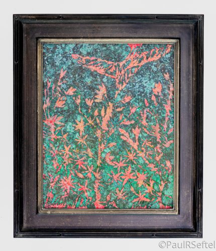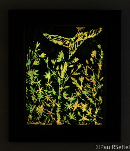 Mica, metal pigments, phosphorescent pigment, polymer on archival panel