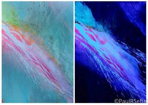 limestone, travertine, copper patina. polymer, uv pigment and oil on canvas