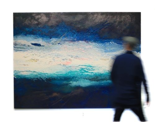 Limestone, marble powder, copper patina, graphite, mica, pigment and polymer on canvas